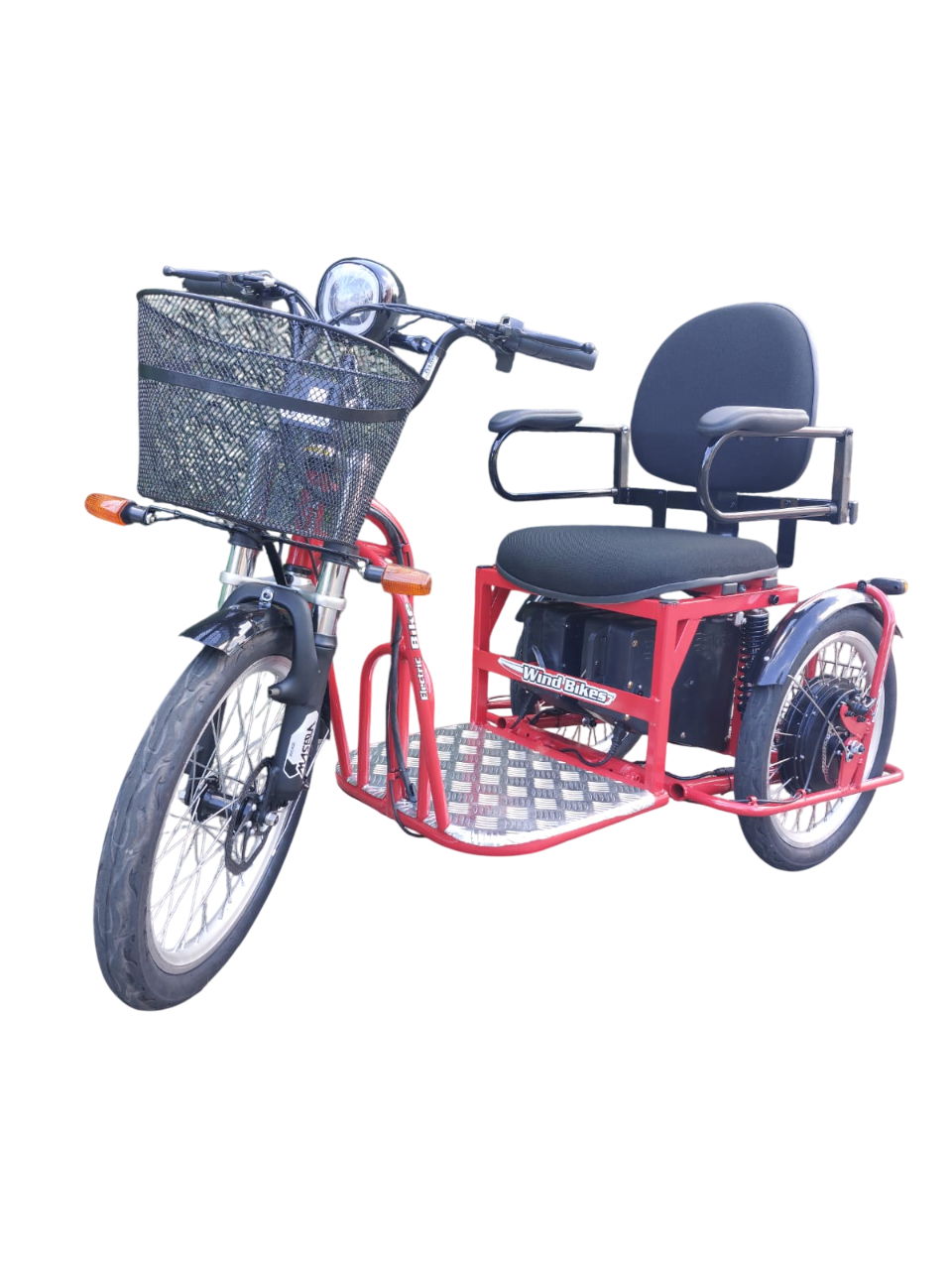 Triciclo Elétrico modelo Advanced 1600 Watts 48 Volts 30ah com Sistema de Ré, setas e luz de freio marca Wind Bikes.